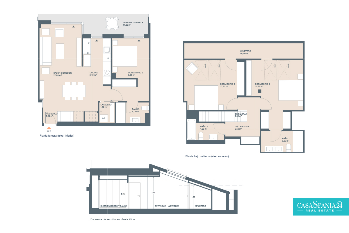 Hovedbadeværelset vil blive leveret med et ekstra fladt brusebad i fuld størrelse, termostatiske vandhaner og et vægmonteret vaskeskab med indbygget vask, der alt sammen danner et æstetisk harmoniseret rum. Det faste panel og spejlet vil også blive installeret i hovedbadeværelset. I det sekundære badeværelse finder du en væghængt vask og et badekar. Alle badeværelser bliver udstyret med LED lysarmaturer.