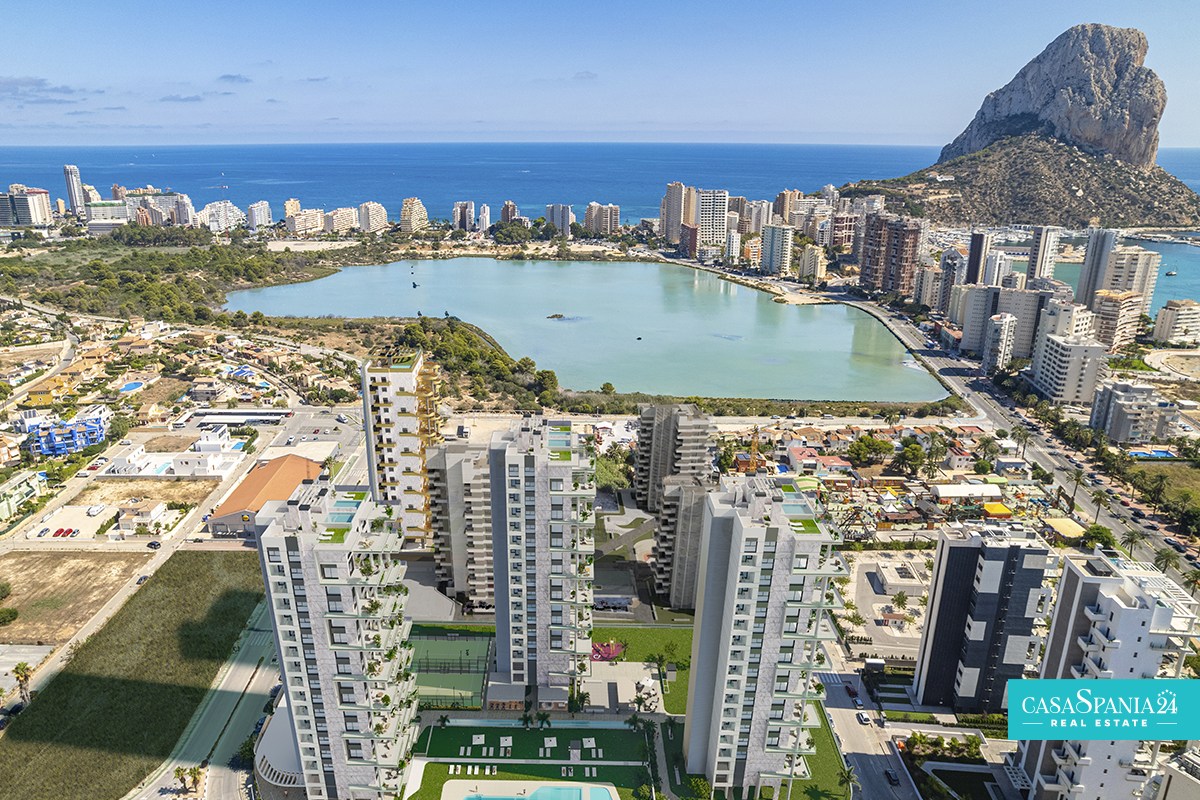 I hjertet af Calpe, med udsigt over havet og under den imponerende silhuet af Peñón de Ifach, løfter dette nye boligprojekt konceptet om velvære og eksklusivitet. 96 boliger fordelt i tre slanke og lyse tårne, der huser lejligheder med rene linjer og terrasser, der åbner sig mod horisonten, og som tilbyder en uovertruffen udsigt over havet, lagunen og bjergene, der omfavner Costa Blanca. Hvert rum er designet til at nyde komforten, roen og skønheden ved hver solopgang.