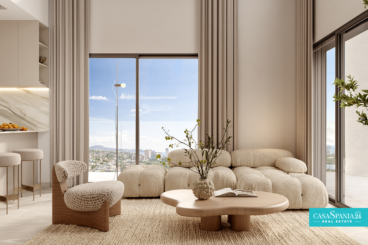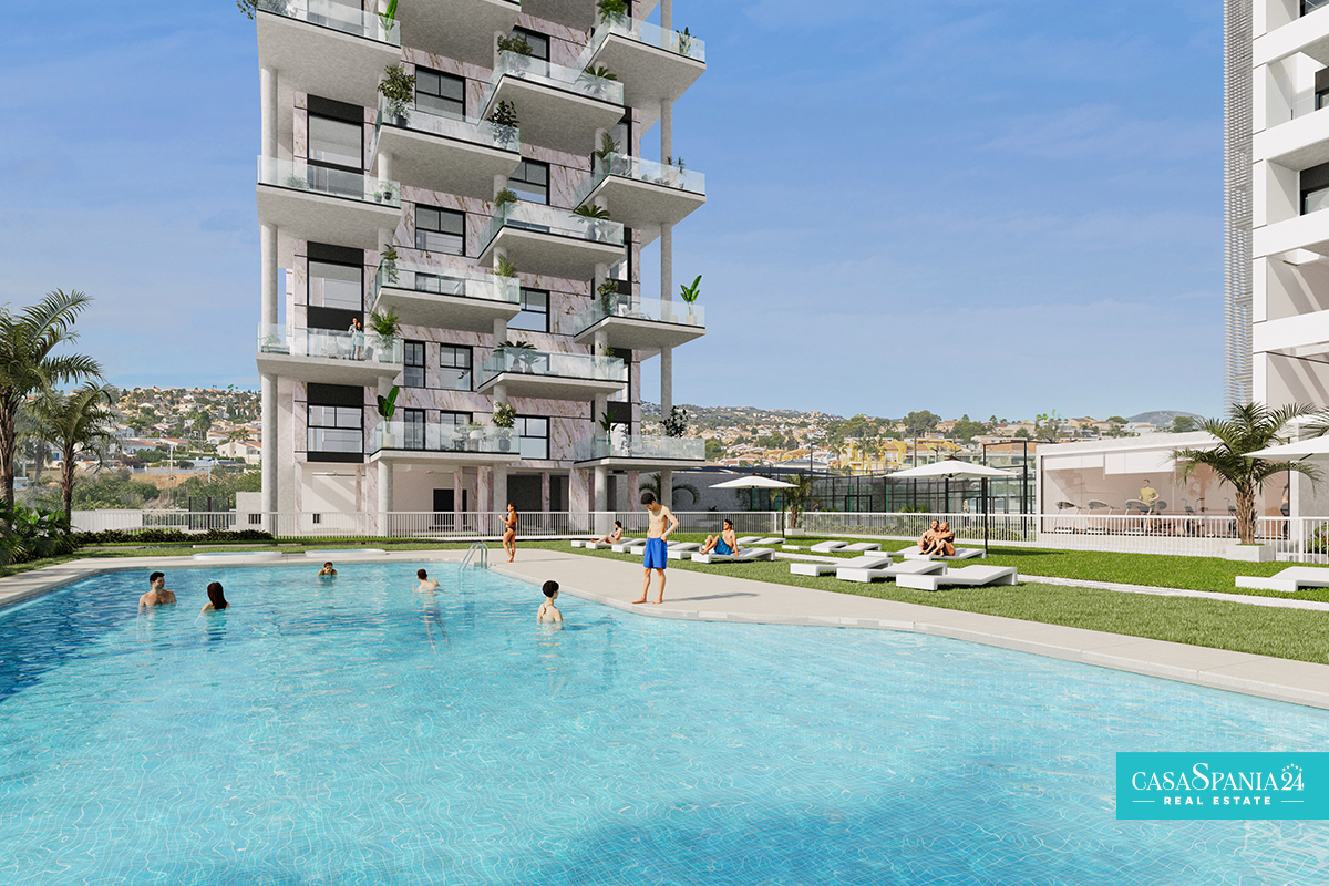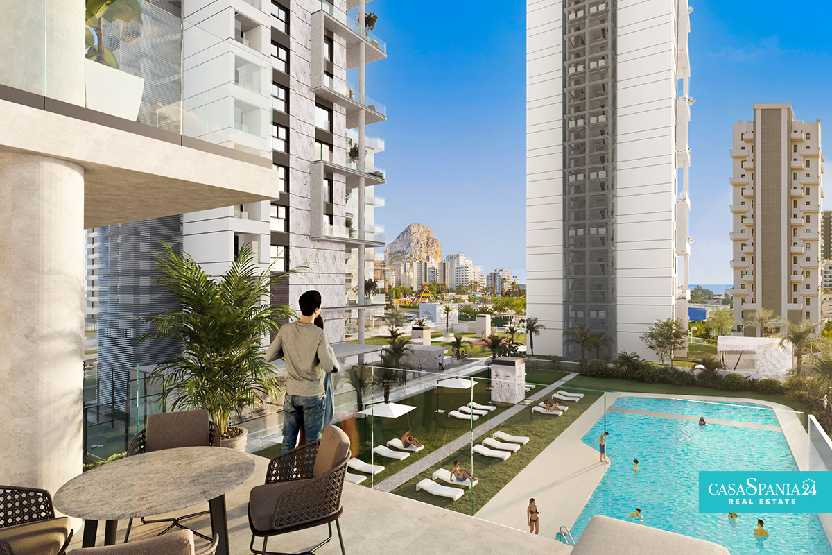 I hjertet af Calpe, med udsigt over havet og under den imponerende silhuet af Peñón de Ifach, løfter dette nye boligprojekt konceptet om velvære og eksklusivitet. 96 boliger fordelt i tre slanke og lyse tårne, der huser lejligheder med rene linjer og terrasser, der åbner sig mod horisonten, og som tilbyder en uovertruffen udsigt over havet, lagunen og bjergene, der omfavner Costa Blanca. Hvert rum er designet til at nyde komforten, roen og skønheden ved hver solopgang.
